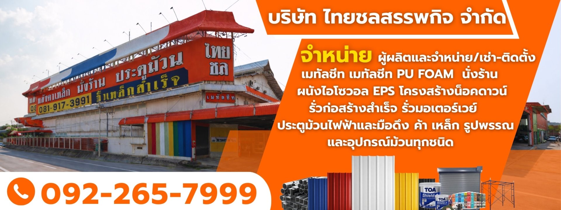 ไทยชลสรรพกิจ นวัตกรรมใหม่ขั้นสุดของเมทัลชีท ผู้ผลิตและจำหน่ายเมทัลชีทรายใหญ่ในชลบุรี รวมถึงบริการติดตั้งโดยผู้ชำนาญการ ไทยชลเป็นที่หนึ่งผู้เชี่ยวชาญและมีประสบการณ์เมทัลชีทมากกว่า 30 ปีเหล็กมาตราฐาน และจำหน่ายเหล็กรูปพรรณทุกรูปแบบ ประตูม้วนและอุปกรณ์ฮาร์ดแวร์ "ครบวงจร"